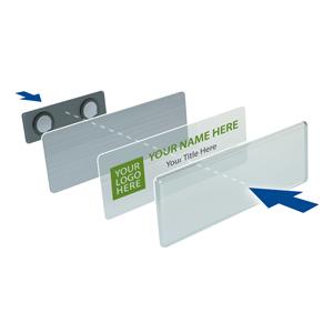 - Komplettpaket mit 50 Namensschildern, Befestigungen und 10 Druckbögen.